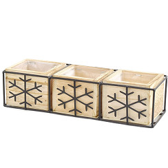 Natural Rect. Wood Planter 'Snowflake' w/ 3 Planters