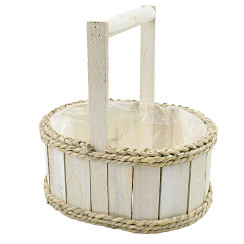 Cala White Wood Planter Oval w/ Handle