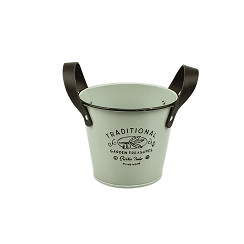 Light-Green Zinc Pot w/ Faux Leather Ears 'Traditional'