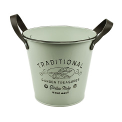 Light-Green Zinc Pot w/ Faux Leather Ears 'Traditional'