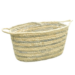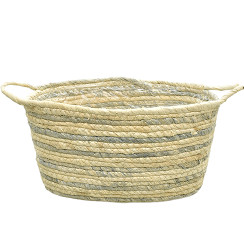 Oval Grey-Natural Maize Rope Basket w/ Ears