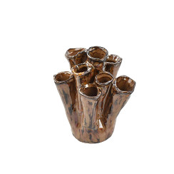 Glossy-Brown Tubular Stoneware Vase S